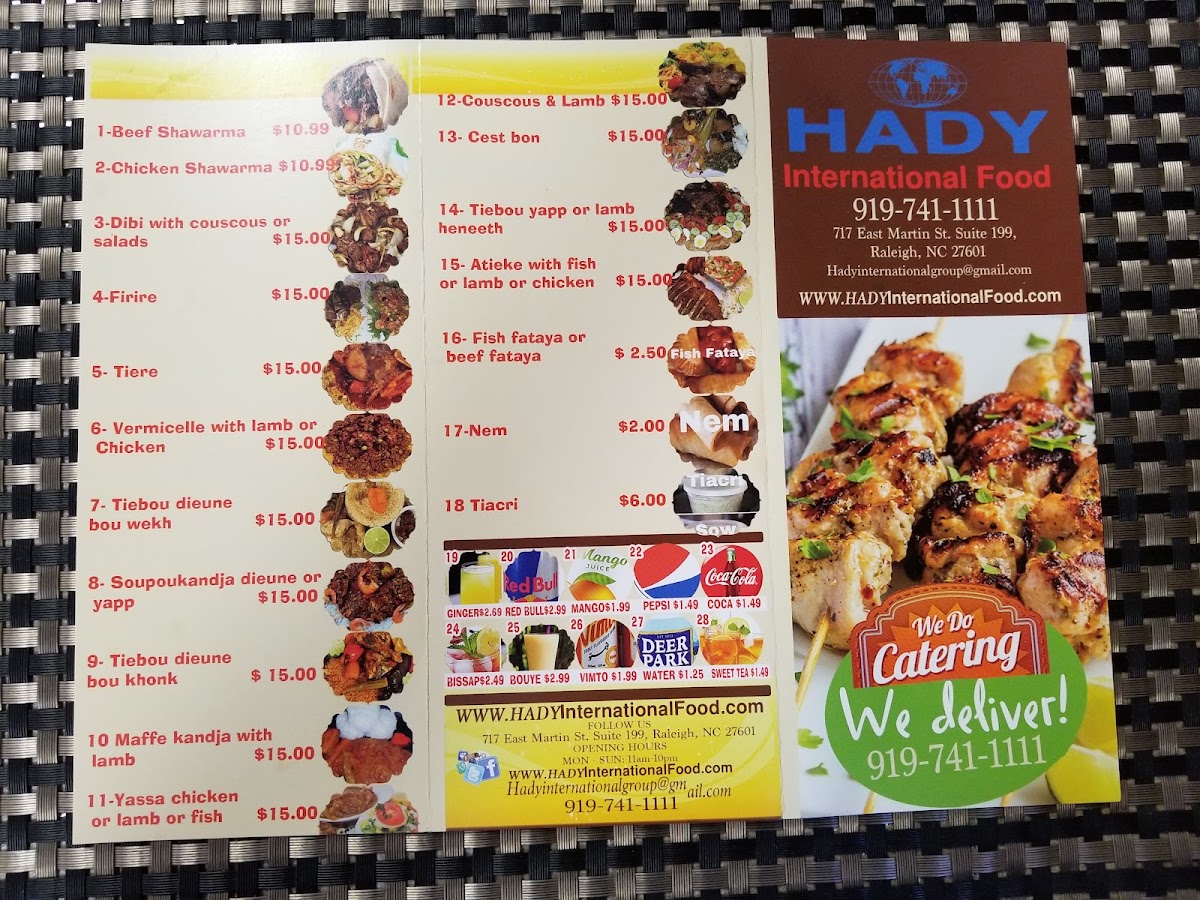 Hady's Restaurant International Cuisine Menu