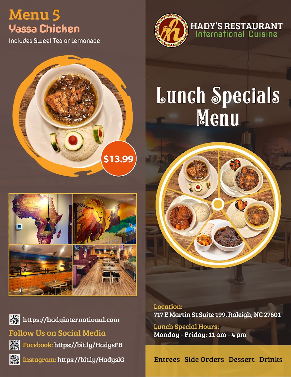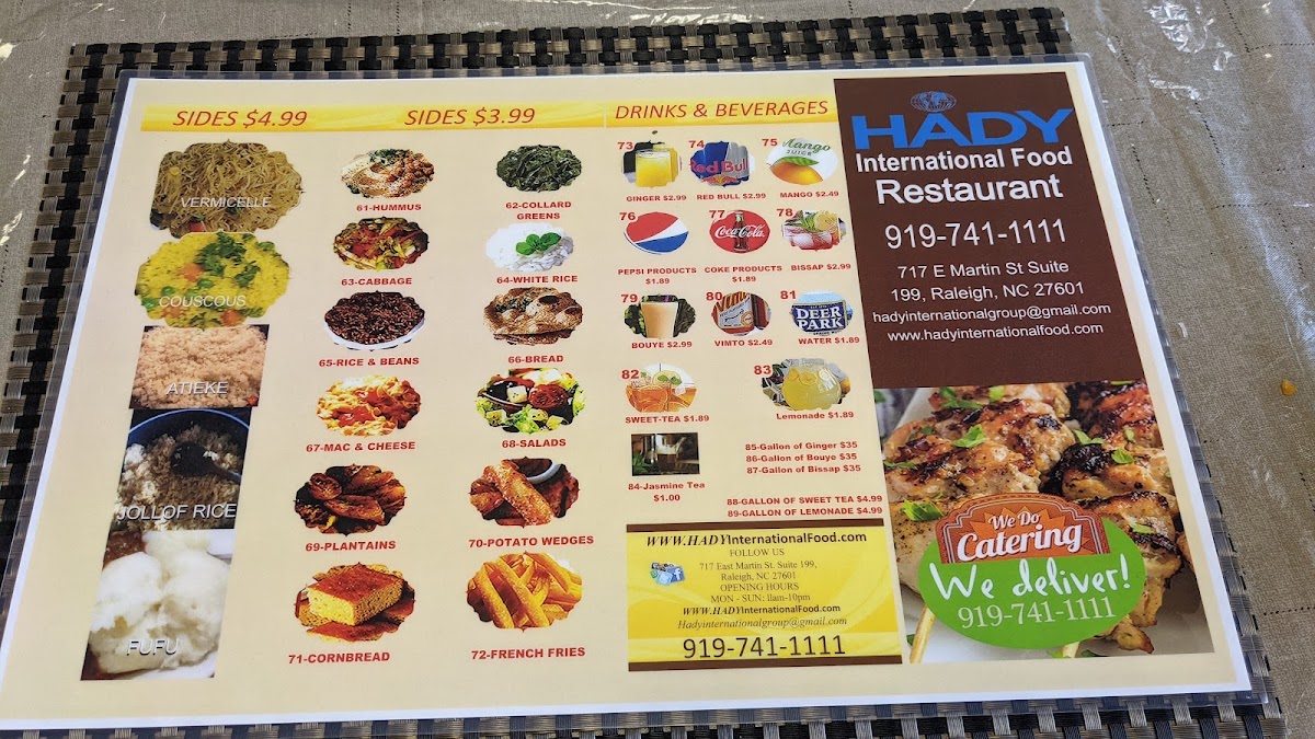 Welcome to Hady's Restaurant International Cuisine, a gem located in the heart of Raleigh, NC, where diverse culinary traditions meet in a vibrant atmosphere. This restaurant celebrates global flavors with a special nod to African cuisine, featuring standout dishes like the rich peanut butter soup, aromatic jollof rice, and flavorful chicken stew.